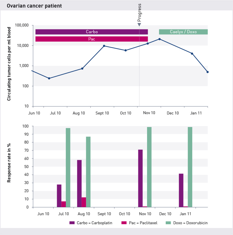 Krążące komórki nowotworowe wydają się reagować na chemioterapię tylko w ograniczonym zakresie. Mimo to wydają się wykazywać jedynie ograniczony trend wzrostowy. Ten trend zwykle wskazuje na pozytywny przyszły wynik leczenia.